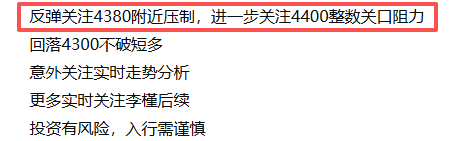 反弹关注4380附近压制,进一步关注4400整数关口阻力